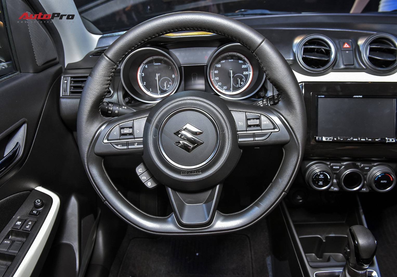 Swift mới có động cơ loại nhỏ hơn, 4 xy-lanh, dung tích 1,2 lít, cho công suất 82 mã lực và mô-men xoắn 113 Nm, kết hợp số tự động vô cấp. Suzuki tự tin công bố Swift có khả năng tiết kiệm nhiên liệu tốt nhất phân khúc. Trang bị an toàn trên mẫu xe này có hỗ trợ phanh (ABS, EBD, BA), camera lùi và 2 túi khí. Xe có 5 màu gồm trắng, xám, đỏ, bạc và xanh.
