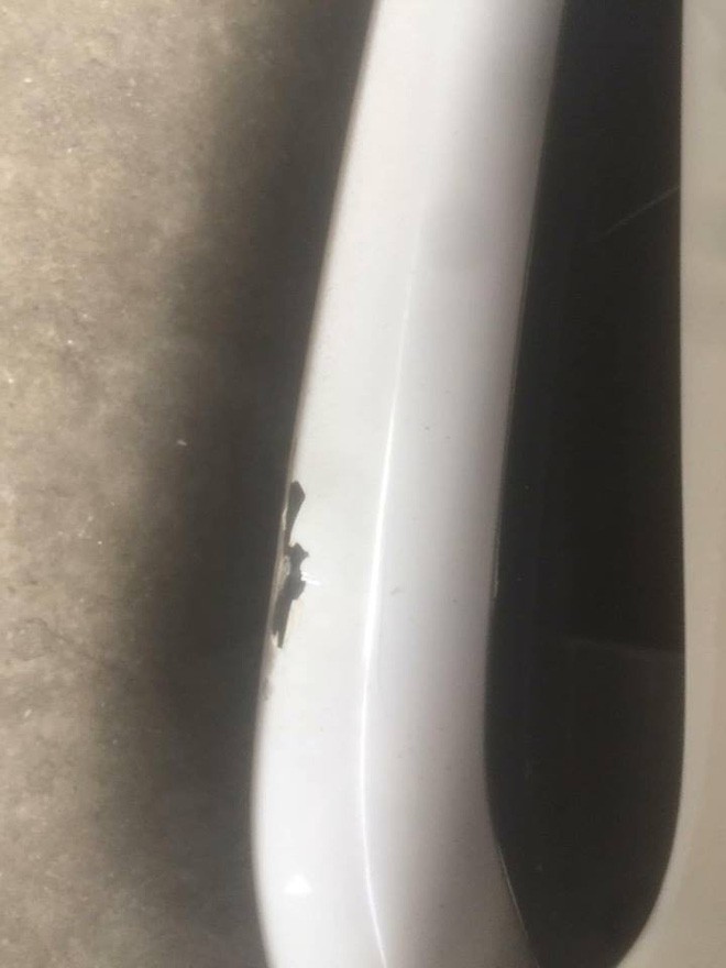 Theo chia sẻ của chủ chiếc xế hộp, khi anh vừa dừng xe thì đột nhiên giật mình thon thót vì nghe tiếng "rầm". Xuống kiểm tra, anh này phát hiện xe mình bị xước sơn, bung nhựa phần đầu. Tuy nhiên còn chưa kịp buồn, khổ chủ lại phải phá lên cười khi nhìn sang "thủ phạm" nhỏ tuổi, đang đứng khóc nhè!